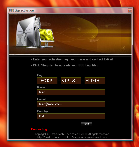 Activation is necessary to make sure your copy is not contrafactory. By activating the product you approve that you have purchased it legally. The compiler is ready to use ONLY if activated properly. To activate your product, use Activation Wizard. Provide the wizard with your activation key that has been shipped to you with your copy of product. Please also provide your contact e-mail and your name.