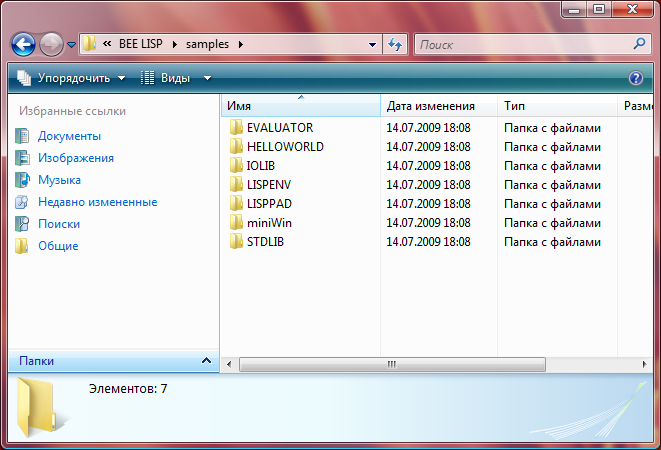 BEE lisp ships with a dozen of examples that shows it’s main features – cooperation with the OS, interaction with other programming languages etc, all these examples are automatically installed in SAMPLES subfolder at Start - Programs - BEE Lisp
